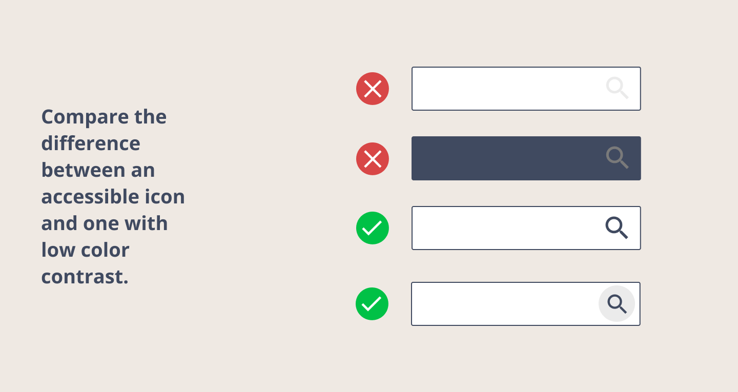 Color – A white search bar remains the standard as it supports an intuitive experience. Your magnifying glass might align with your brand colors, but make sure there is enough contrast for it to comply with accessibility guidelines.